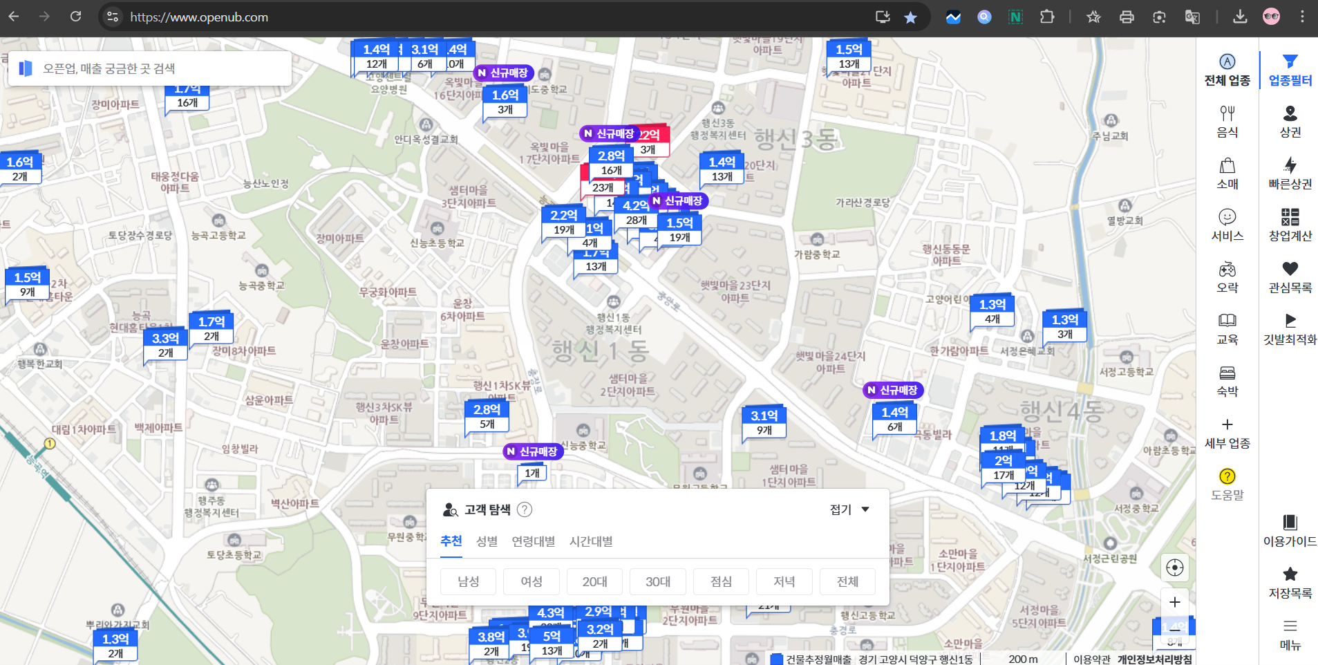 - 오픈업의 상권 분석 데이터를 활용하여 가게를 오픈할 최적의 위치 선정