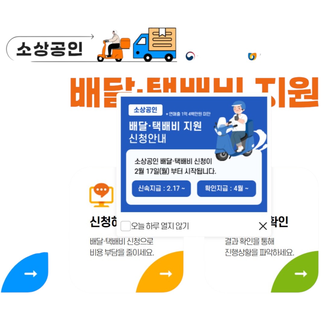 - 소상공인 배달·택배비 지원사업 콜센터 : ☎ 1533-0500